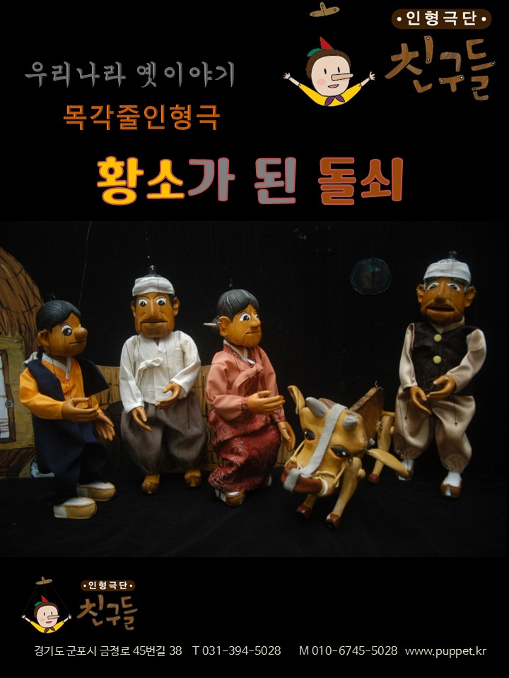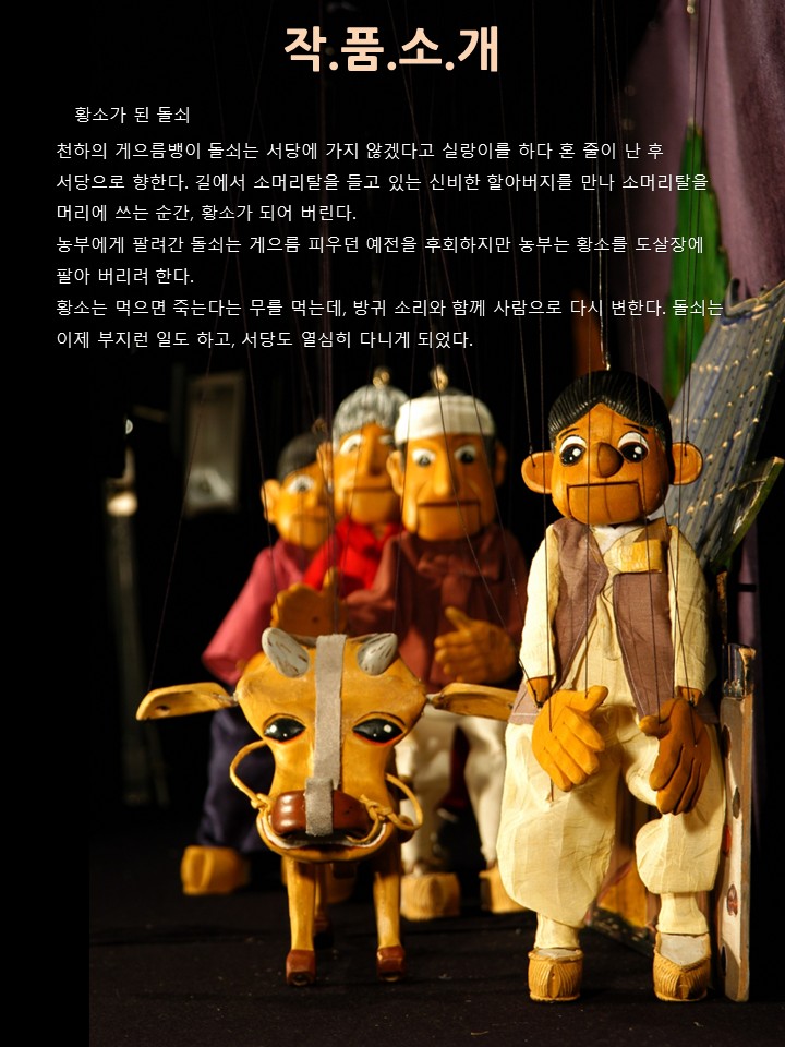 “황소가 된 돌쇠” 는 전래동화 “소가 된 게으름뱅이”를 각색한 작품으로 나무를 조각해 만든 목각줄인형극 작품으로