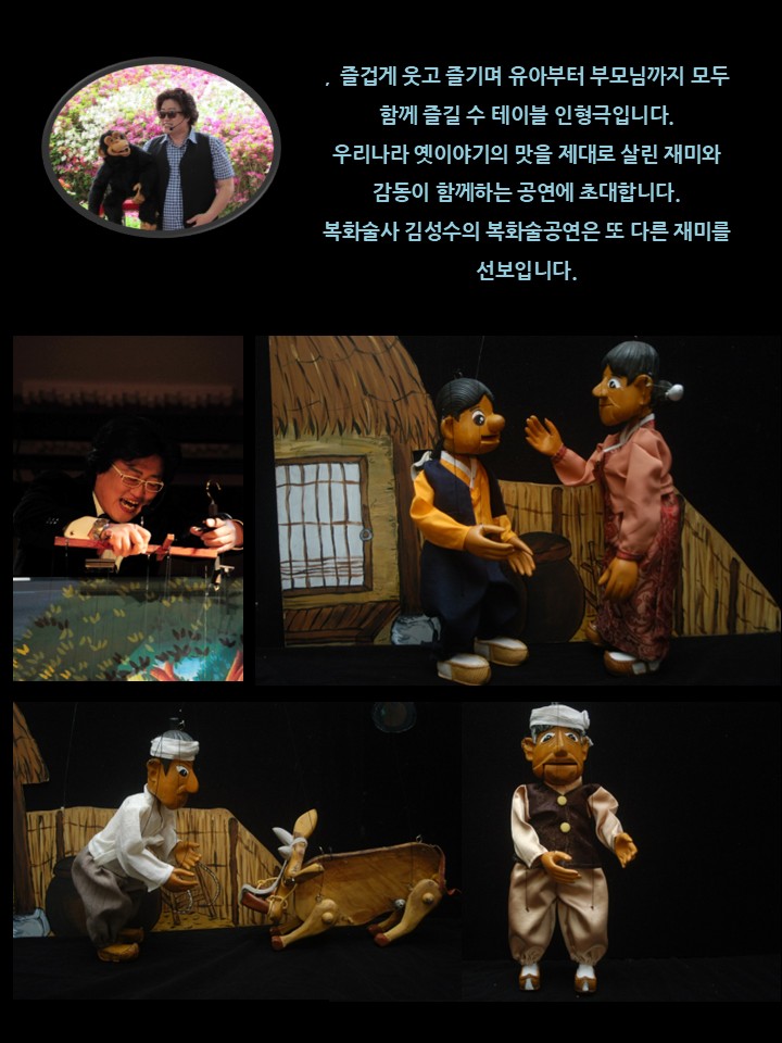 줄로 연결된 하나 하나의 목각관절을 통하여 표현되는 줄인형극의 즐거움속으로 초대합니다.